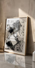 Una llamativa fotografía en blanco y negro de los perfumes de Yves Saint Laurent, elegantemente colocados sobre un lecho de rosas. El logotipo distintivo de YSL, el diseño elegante y el fondo floral crean una armonía perfecta de lujo y romance, haciendo de este estampado una opción refinada para interiores inspirados en la belleza, la moda y la elegancia atemporal.